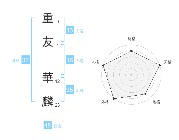 重友 華麟さんの外格は32画の5点!