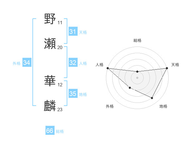 野瀬 華麟さんの天格は31画の5点!
