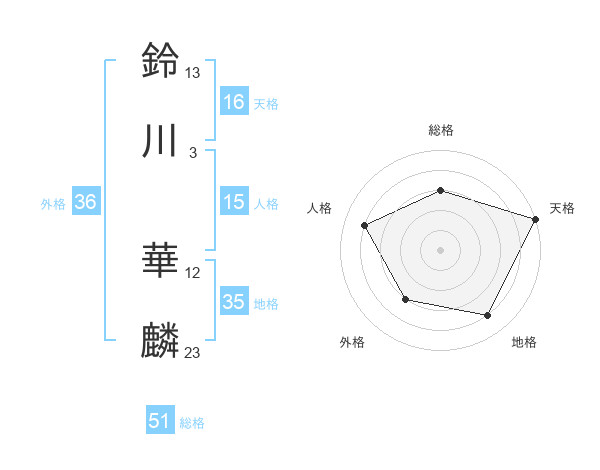 鈴川 華麟さんの総格は51画の3点!