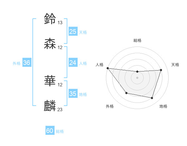 鈴森 華麟さんの総格は60画の1点!