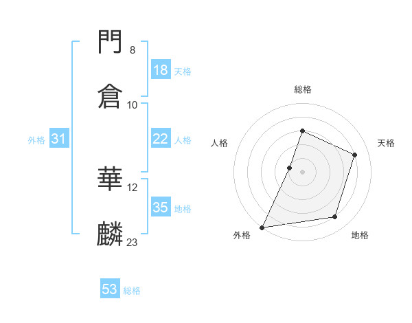 門倉 華麟さんを姓名の画数から五運を鑑定