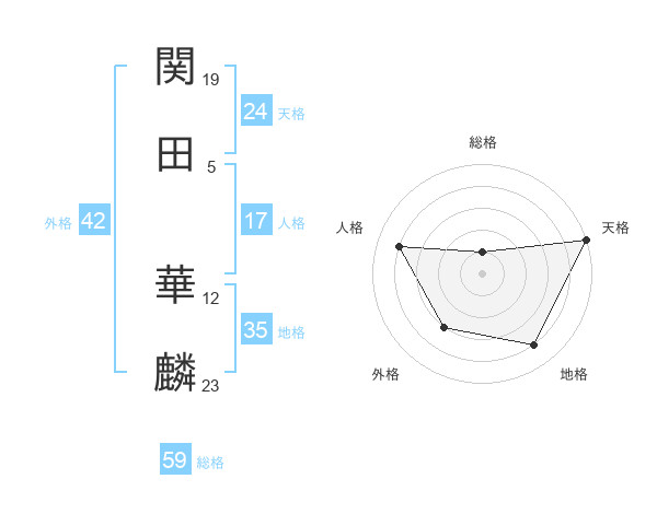 関田 華麟さんの天格は24画の5点!