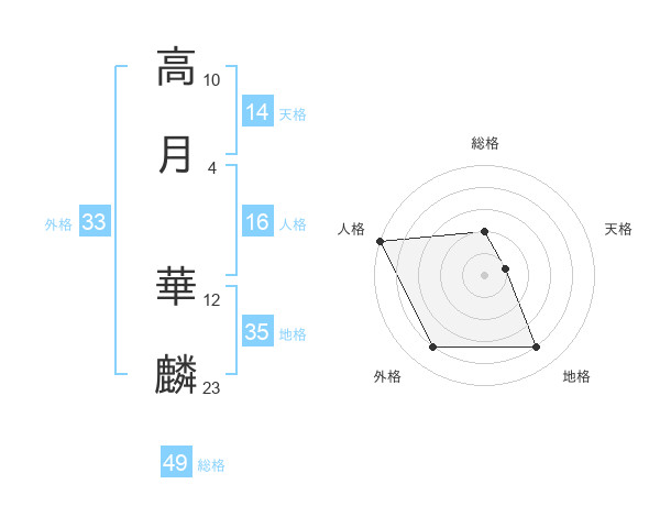 高月 華麟さんの総格は49画の2点!