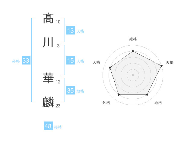 髙川 華麟さんを姓名の画数から五運を鑑定