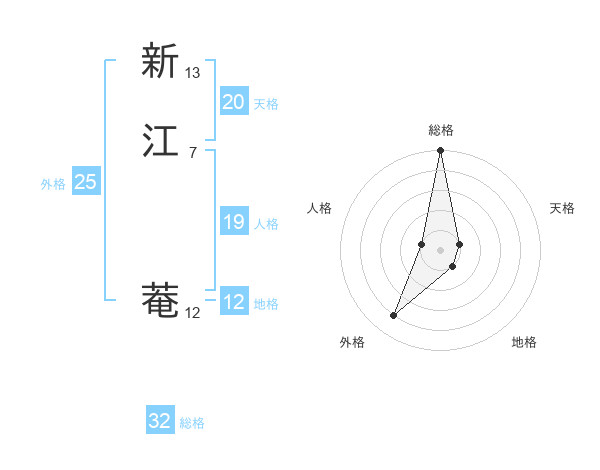 新江 菴さんの総格は32画の5点!