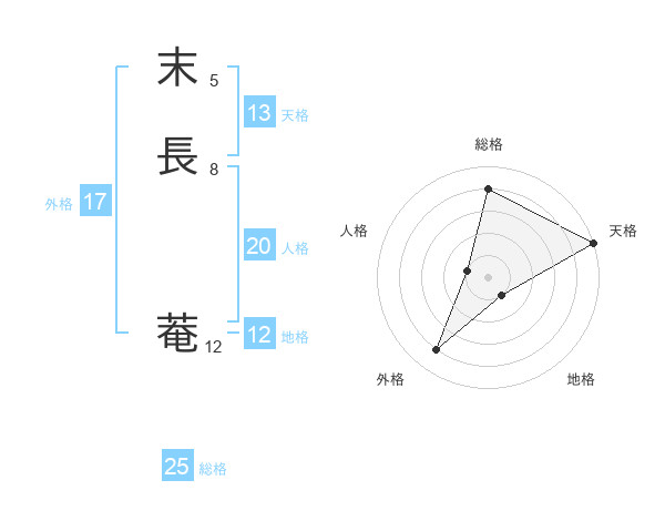 末長 菴さんの総格は25画の4点!