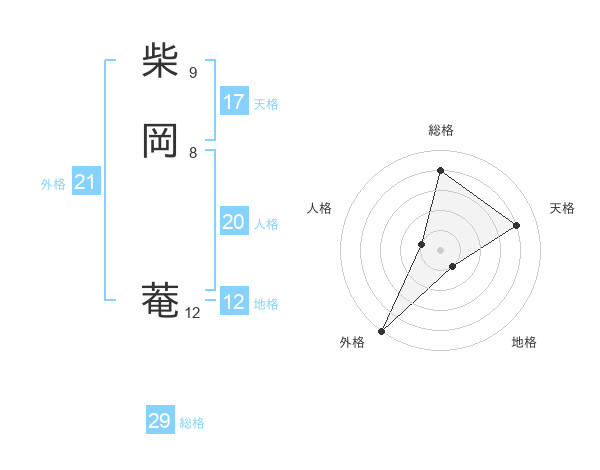 柴岡 菴さんの外格は21画の5点!