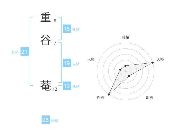 重谷 菴さんの総格は28画の1点!