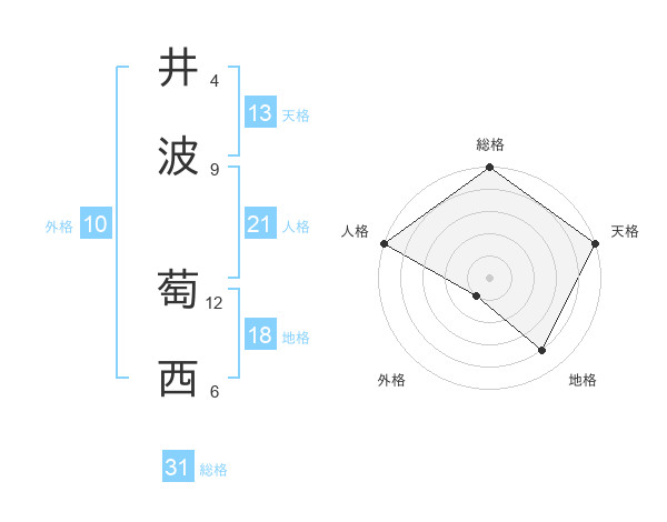 井波 萄西さんの総格は31画の5点!