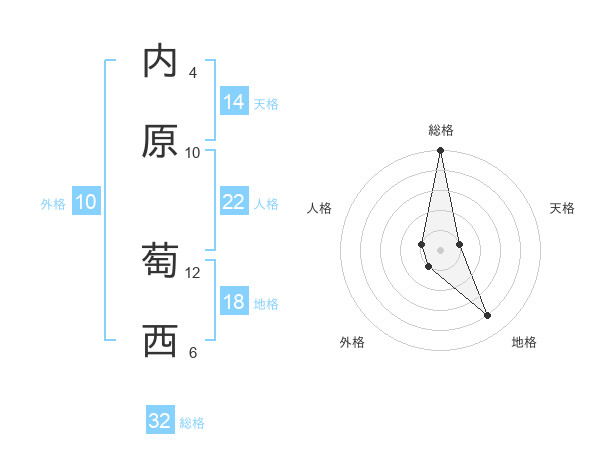 内原 萄西さんの総格は32画の5点!