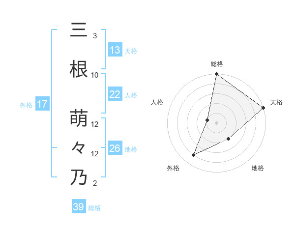 三根 萌々乃さんを姓名の画数から五運を鑑定