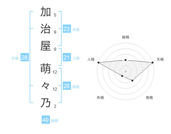 加治屋 萌々乃さんを姓名の画数から五運を鑑定