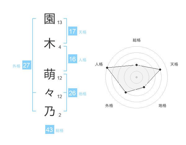 園木 萌々乃さんの天格は17画の4点!