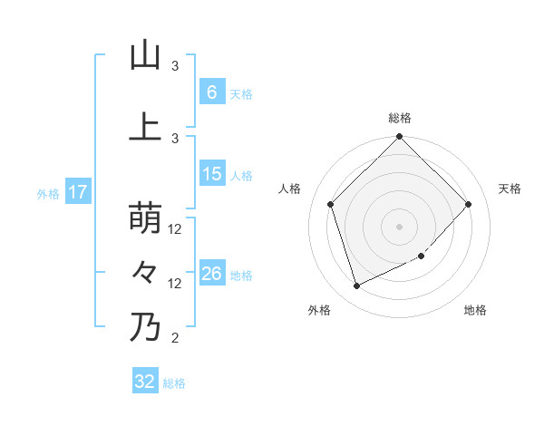 山上 萌々乃さんを姓名の画数から五運を鑑定