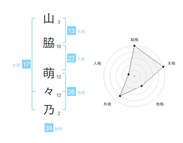 山脇 萌々乃さんを姓名の画数から五運を鑑定