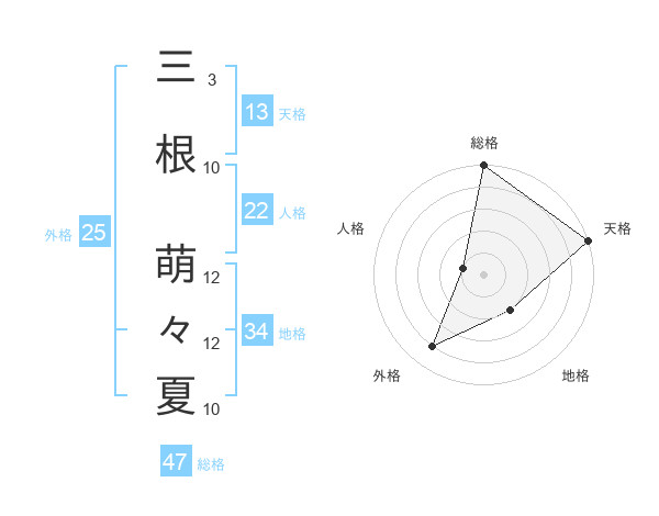 三根 萌々夏さんを姓名の画数から五運を鑑定