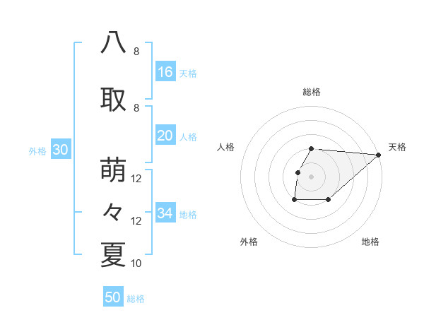 八取 萌々夏さんの総格は50画の2点!