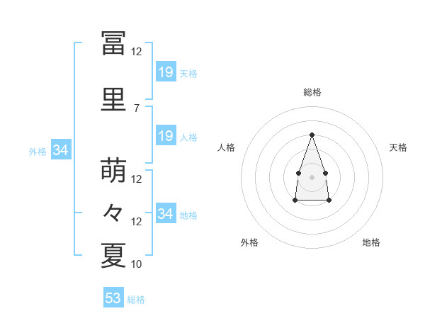 冨里 萌々夏さんの外格は34画の2点!