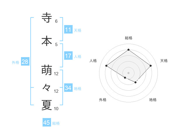 寺本 萌々夏さんを姓名の画数から五運を鑑定