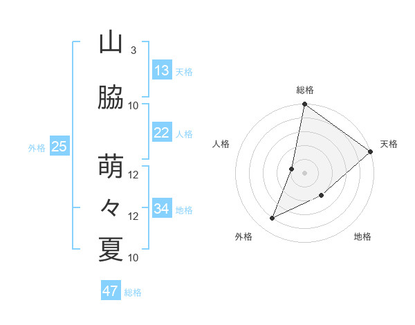 山脇 萌々夏さんを姓名の画数から五運を鑑定