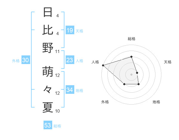 日比野 萌々夏さんを姓名の画数から五運を鑑定