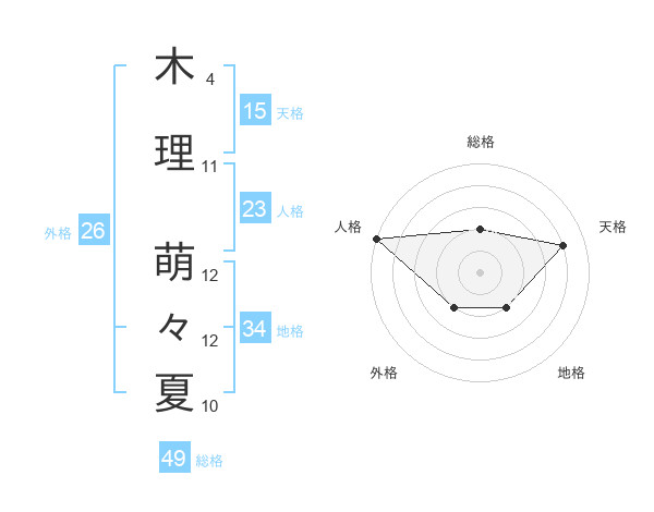 木理 萌々夏さんを姓名の画数から五運を鑑定