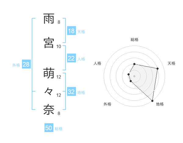 雨宮 萌々奈さんの天格は18画の4点!