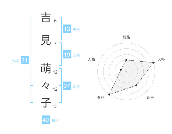 吉見 萌々子さんの外格は21画の5点!