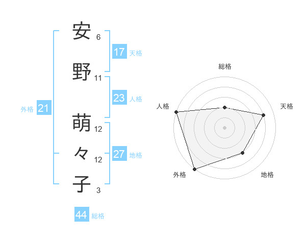 安野 萌々子さんの総格は44画の2点!
