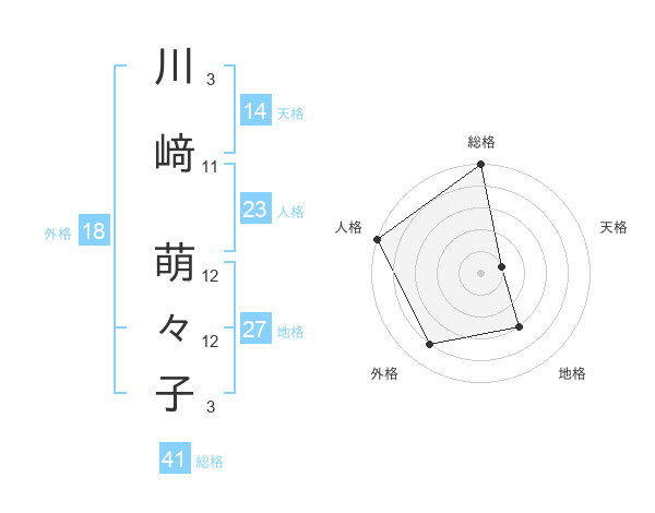 川﨑 萌々子さんを姓名の画数から五運を鑑定