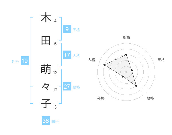 木田 萌々子さんを姓名の画数から五運を鑑定