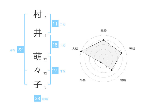 村井 萌々子さんを姓名の画数から五運を鑑定
