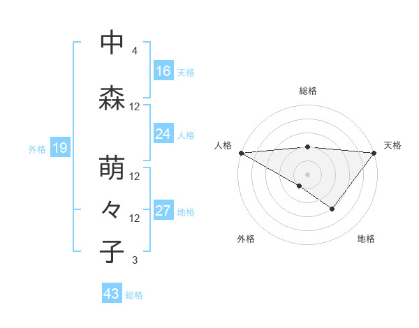 中森 萌々子さんを姓名の画数から五運を鑑定