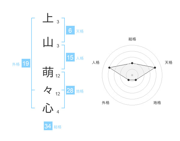 上山 萌々心さんの総格は34画の2点!