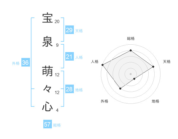 宝泉 萌々心さんを姓名の画数から五運を鑑定