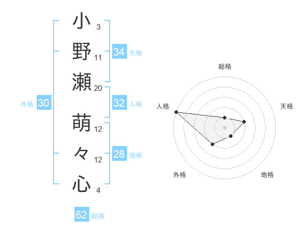 小野瀬 萌々心さんを姓名の画数から五運を鑑定