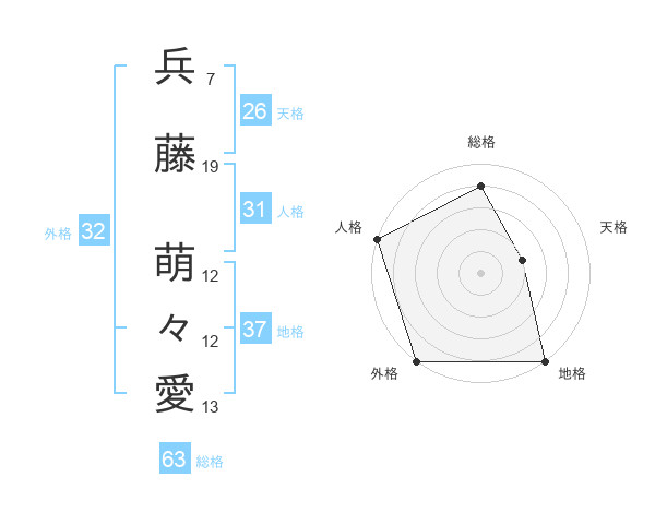 兵藤 萌々愛さんを姓名の画数から五運を鑑定