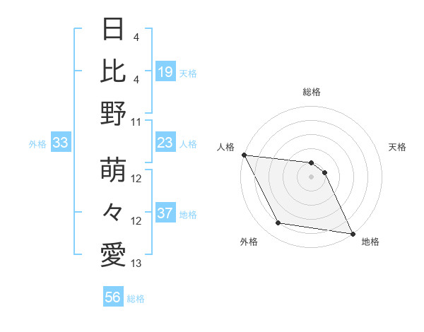 日比野 萌々愛さんを姓名の画数から五運を鑑定