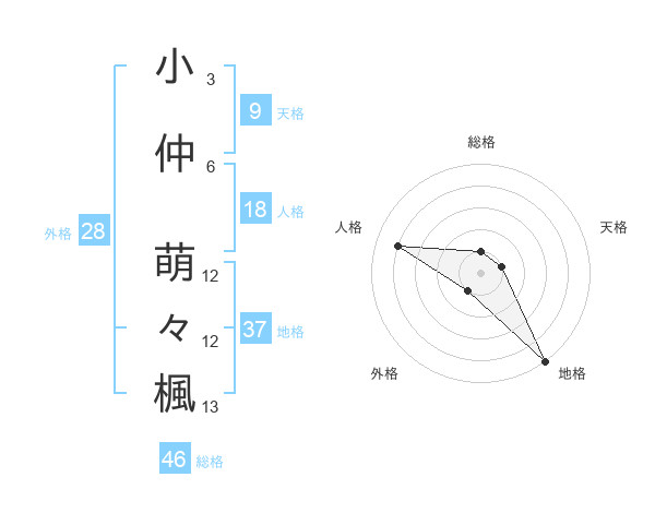 小仲 萌々楓さんを姓名の画数から五運を鑑定
