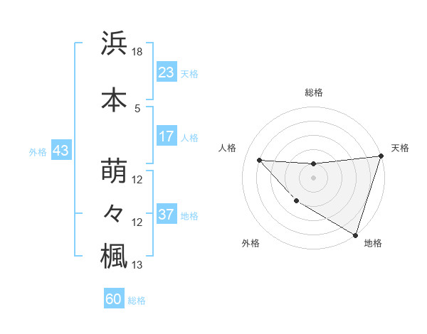 浜本 萌々楓さんを姓名の画数から五運を鑑定