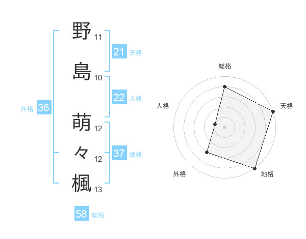 野島 萌々楓さんの総格は58画の4点!