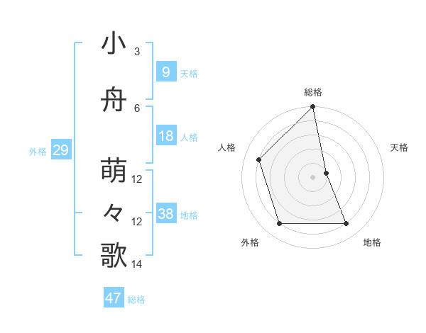 小舟 萌々歌さんの総格は47画の5点!