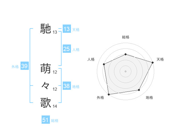 馳 萌々歌さんの外格は39画の5点!