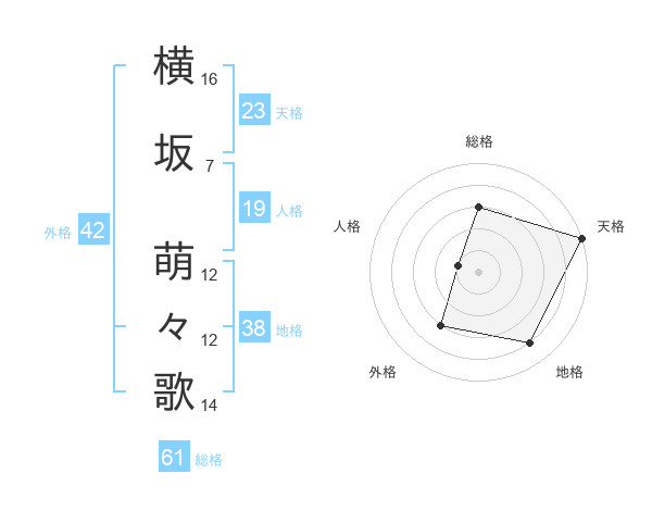 横坂 萌々歌さんを姓名の画数から五運を鑑定