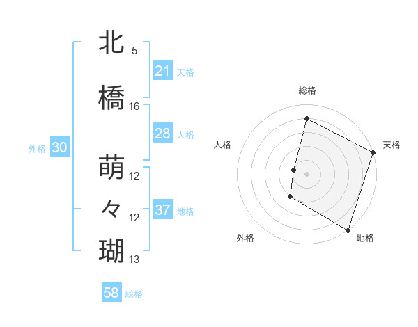 北橋 萌々瑚さんの総格は58画の4点