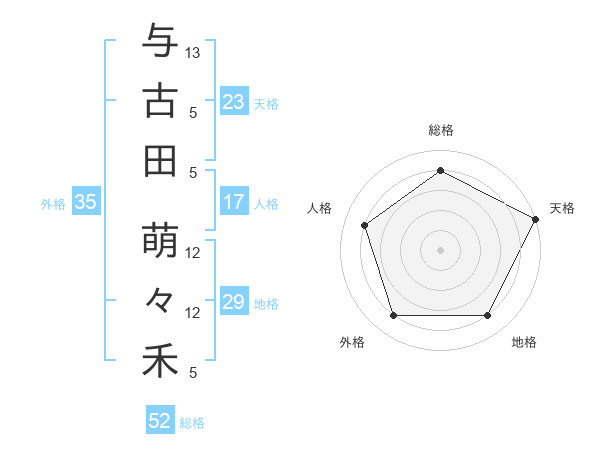 与古田 萌々禾さんを姓名の画数から五運を鑑定