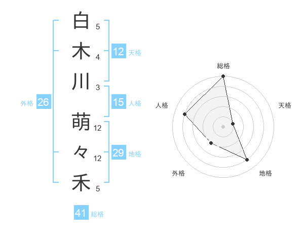 白木川 萌々禾さんを姓名の画数から五運を鑑定