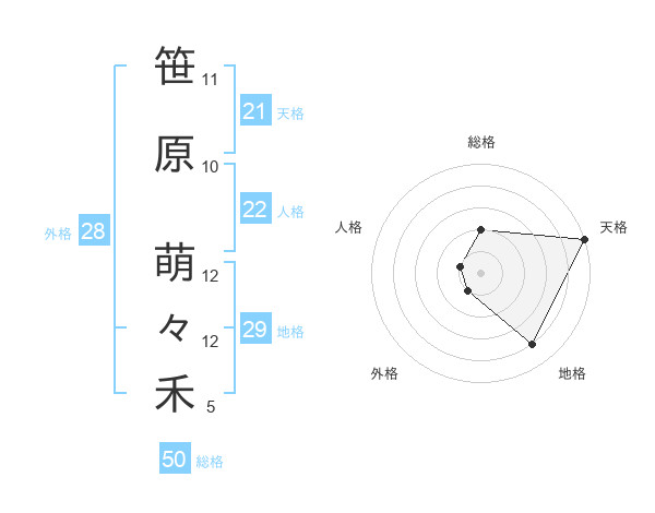 笹原 萌々禾さんを姓名の画数から五運を鑑定
