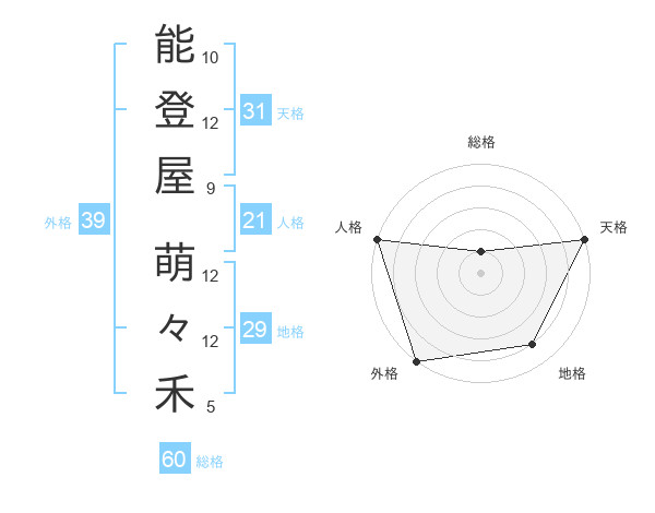 能登屋 萌々禾さんの天格は31画の5点!