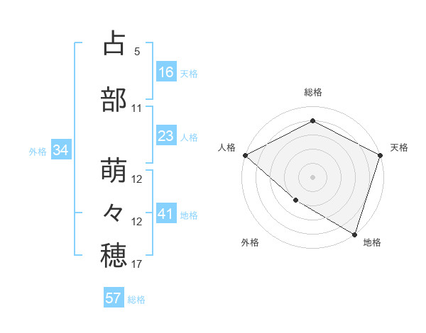 占部 萌々穂さんの天格は16画の5点!